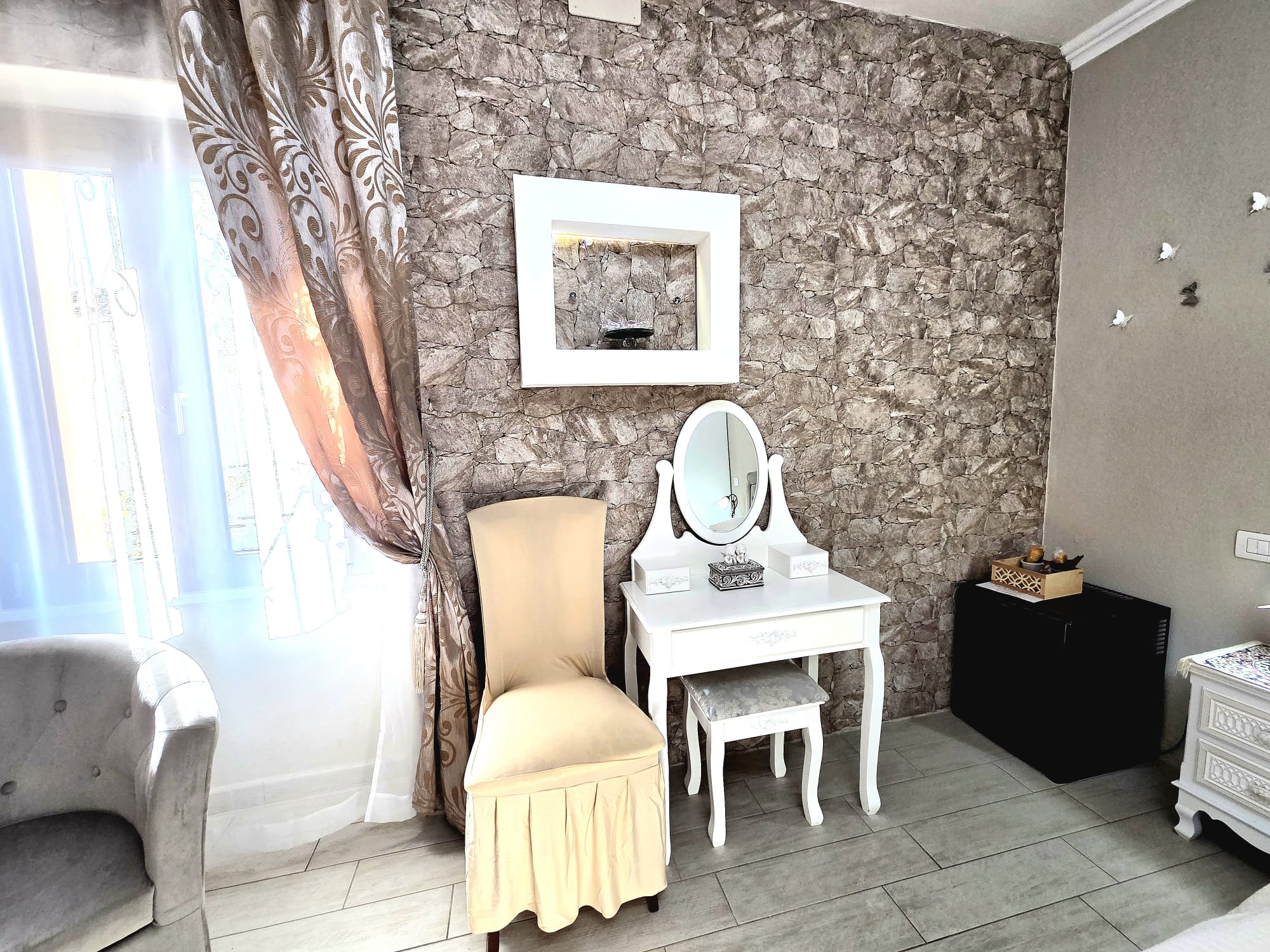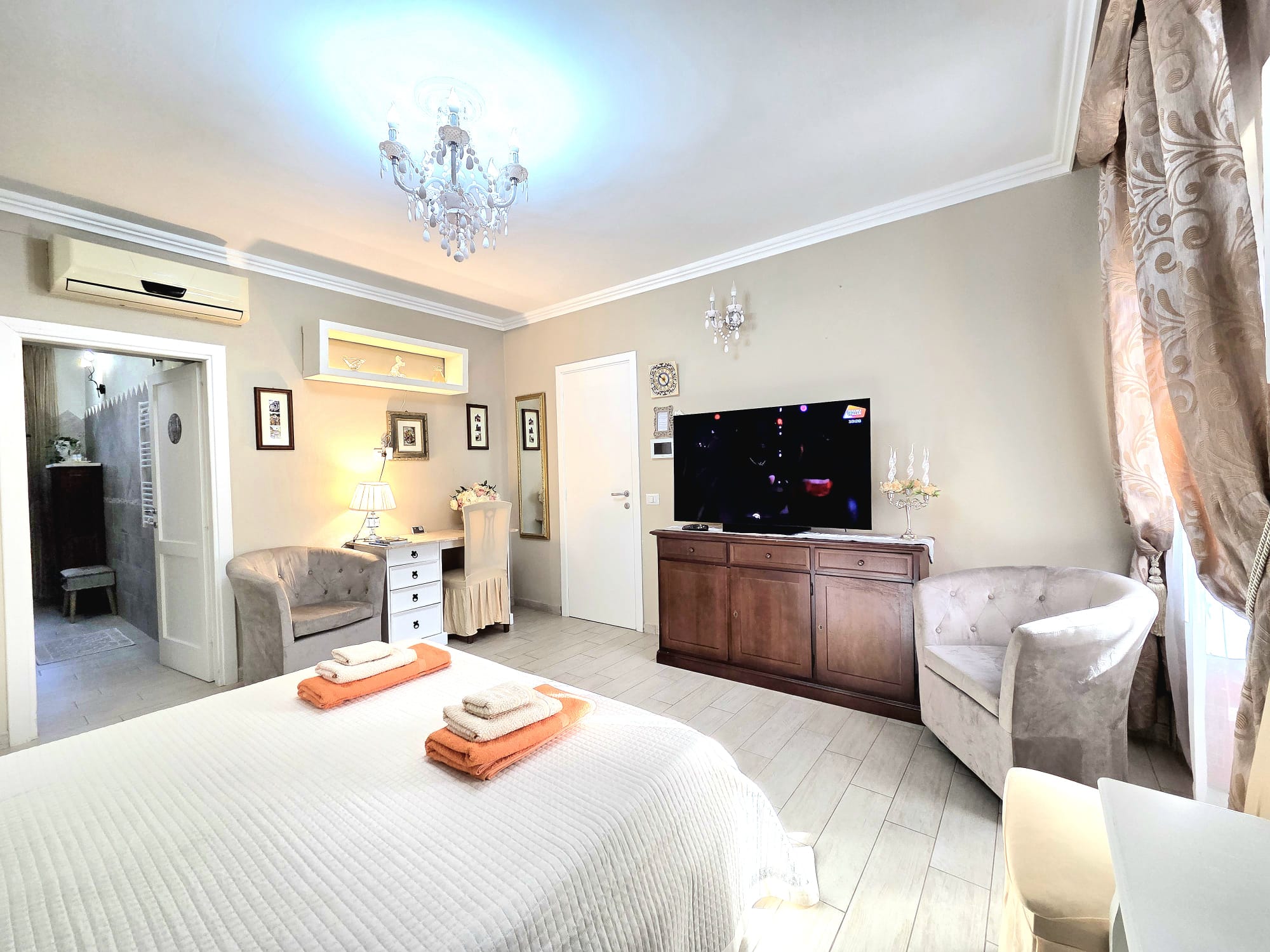 La Lux Energy Room è stata progettata per offrire un’atmosfera di raffinata accoglienza. Gli interni, caratterizzati da arredi di pregio e un’attenta cura dei dettagli, includono un bagno en suite dal design moderno e un sistema di aria condizionata per garantire il massimo comfort in ogni stagione. L’ingresso indipendente assicura agli ospiti la totale autonomia e riservatezza durante il soggiorno.
